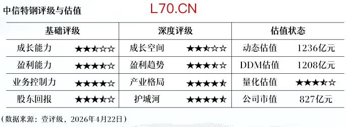 壹评级:中信特钢一季报业绩超预期,估值修复空间充足