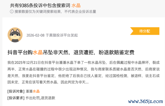 然而,繁荣之下,乱象已生。在消费者投诉 【下载黑猫投诉客户端】平台黑猫上,“水晶”词条下有9385条消费者投诉。其中,水晶造假、材质不符、产品瑕疵、售后问题、退款难等问题都成为消费者投诉的重灾区。