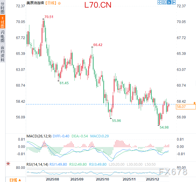 汇通财经APP讯——周二(12月30日)亚欧时段放量突破能买吗,美原油价格于58.00美元/桶附近震荡,当前油价走势反映了短期地缘政治风险与中期基本面之间的复杂拉锯。