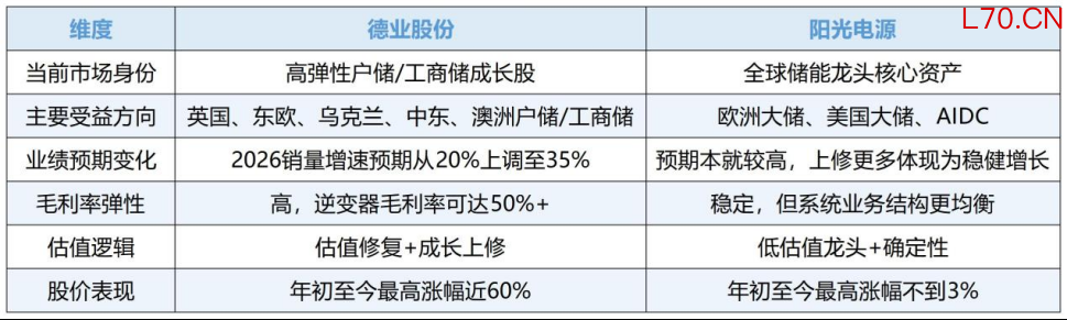 德业股份年初至今股价反超阳光电源,本质上是“市场阶段性偏好”与“公司自身弹性”的共振,而非阳光电源基本面走弱。